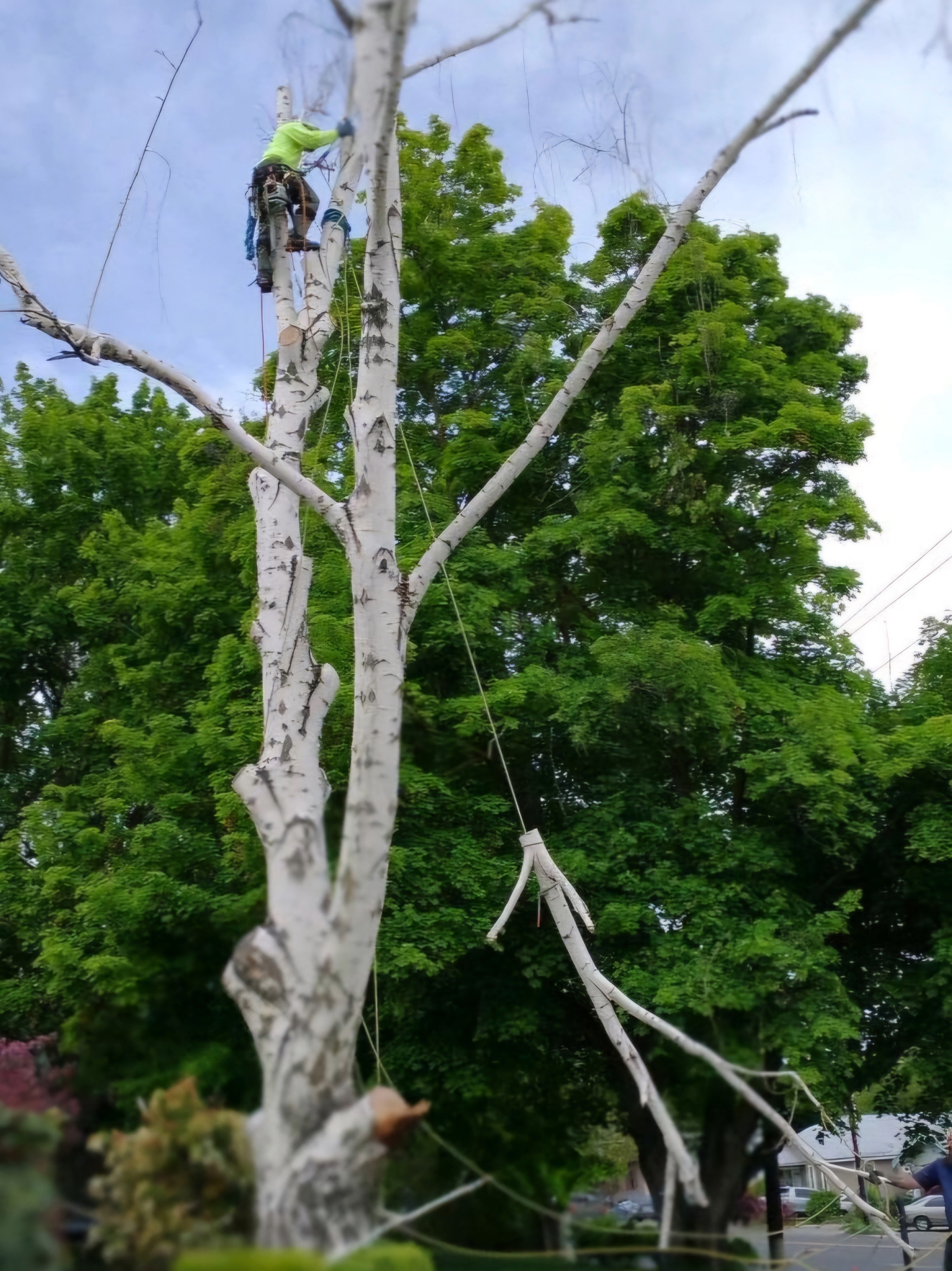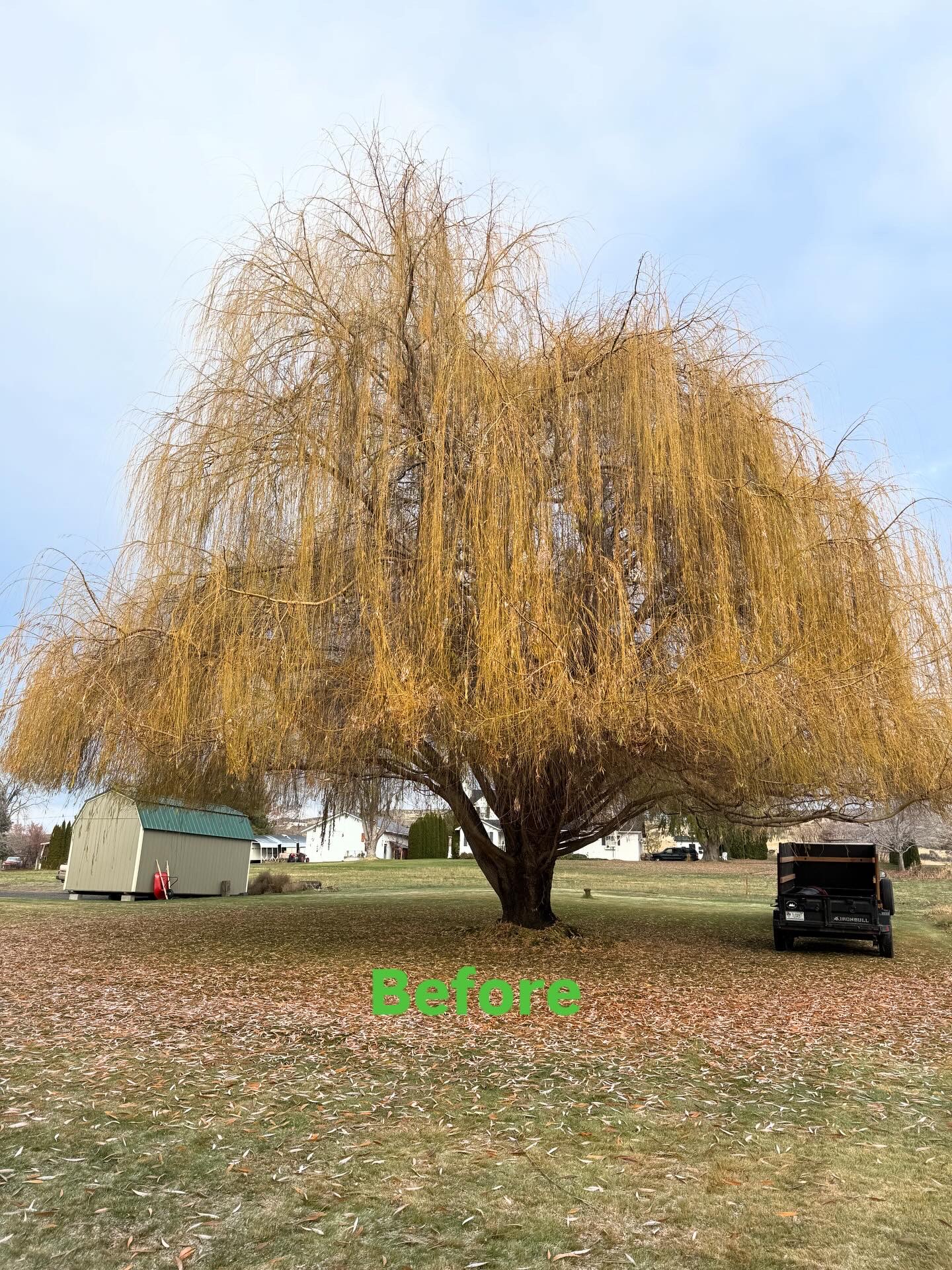 If you’re looking for the ultimate budget saver, we can simply come and safely lay your tree down as is- this does not include clean-up or haul away fees, saving you the most money for your project.
